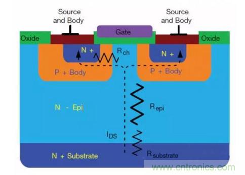 圖2:平麵式MOSFET的電阻性元件