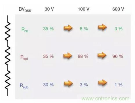 RDS(on) = Rch + Repi + Rsub
