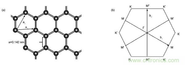 圖1.石墨烯的結構特征:(1)晶體結構;(2)布裏淵區
