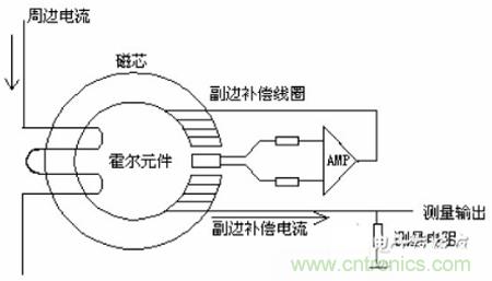霍爾電流傳感器的原理圖如3-2。被測電流In流過導體產生的磁場,由通過霍爾元件輸出信號控製的補償電流Im流過次級線圈產生的磁場補償,當原邊與副邊的磁場達到平衡時其補償電流Im即可精確反映原邊電流In值。