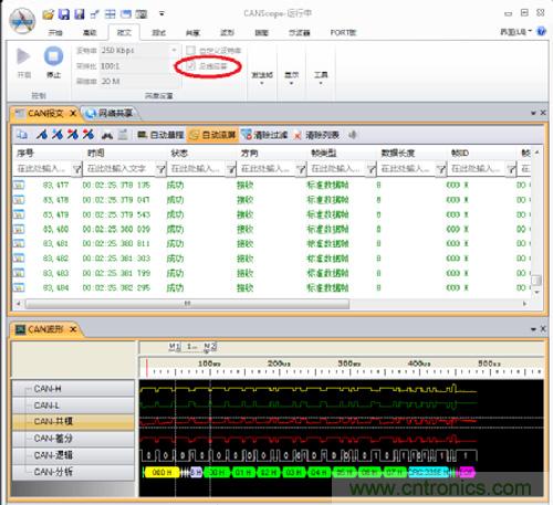 我們勾選上總線應答,再次開始實驗(此時總線中相當於有3個節點)。這時如圖8所示,總線數據收發正常。