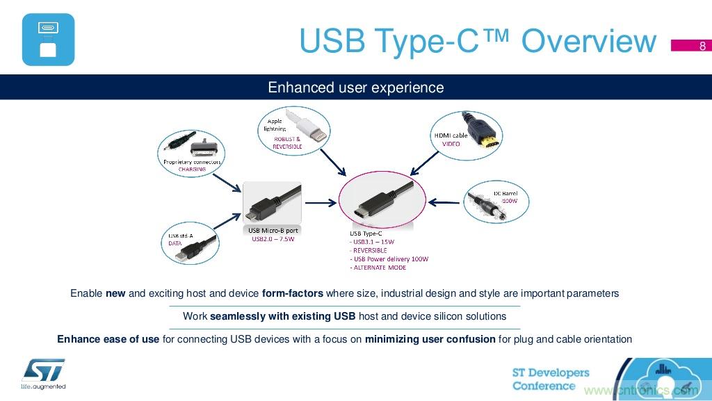 支持正反插拔 兼容 USB 3.1 標準,最快支持 10Gbit/s 傳輸 支持 USB Power Delivery 充電協議,最大可以提供 100W 的電力,並且可雙向供電 支持 DisplayPort,可以輸出音頻與視頻