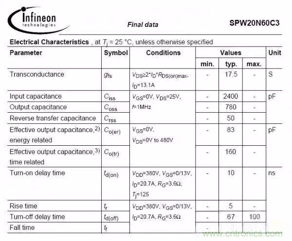 參照以上兩圖,是不同型號的MOS管,對比下輸入結電容和輸出結電容,2400PF與800PF;780PF與2200PF;一看就知道第一個規格是快管,第二個是慢管,這時候決定開關速度還要與驅動電阻匹配;常規情況驅動電阻在10R-150R比較多,選取驅動電阻與結電容有關,針對快板驅動電阻可適當增大,慢管驅動電阻可適當減小; 對於二極管,有肖特基二極管,快回複二極管,普通二極管,還有一種用的比較少的SIC二極管,開關速度SIC二極管幾乎為零,等於是沒有反向恢複,開關輻射最小,並且損耗也最小,唯一的缺點就是價格昂貴,故很少用;其次就是肖特基二極管,正向壓降低,反向恢複時間短,依次是快回複和普通二極管;需要在損耗和EMC之間折中;一般可采取改吸收以及套磁珠等措施整改EMC;