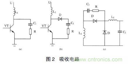 開關電源產生EMI 的主要原因是電壓和電流的急劇變化, 因而需要盡可能地降低電路中電壓和電流的變化率( du/ dt 和di/ dt ) 。采取吸收電路能夠抑製EMI, 其基本原理就是在開關關斷時為其提供旁路, 吸收積蓄在寄生分布參數中的能量, 從而抑製幹擾的發生。可以在開關管兩端並聯如圖2( a) 所示的RC 吸收電路, 開關管或二極管在開通和關斷過程中, 管中產生的反向尖峰電流和尖峰電壓, 可以通過緩衝的方法予以克服。緩衝吸收電路可以減少尖峰電壓的幅度和減少電壓波形的變化率, 這對於半導體器件使用的安全性非常有好處。與此同時, 緩衝吸收電路還降低了射頻輻射的頻譜成份, 有益於降低射頻輻射的能量。箝位電路主要用來防止半導體器件和電容器被擊穿的危險。