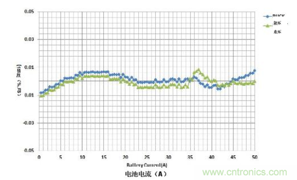 許多因素都會影響係統精度,包括溫度漂移、電壓漂移和偏移電壓。電池測試儀參考設計使用三點校準來計算不同的影響來源或任何錯誤。圖2顯示了在寬電流範圍內實現的滿量程精度。該係統在電池充電時以降壓模式運行,放電時以升壓模式運行。