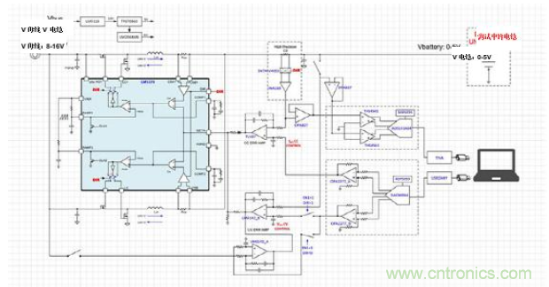 如圖1所示,參考設計采用LM5170-Q1,可調節流入或流出電池的電流。INA188實現並監控CC控製環路,由於電流可向任一方向流動,SN74LV4053A多路複用器可對INA188輸入作相應調整。將檢測到的電流與DAC80004數模轉換器(DAC)產生的精密基準進行比較,並將這兩個信號饋入由TLV07實現的誤差放大器(EA)。EA的輸出反饋到LM5170的ISETA模擬電流編程引腳,該引腳將流經電流檢測電阻的電流調節為電流參考信號。