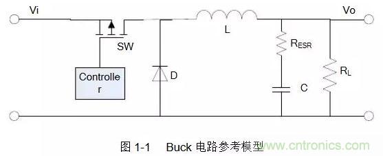 Buck型和Boost型開關電源具有不同的拓撲結構,本文將使用如圖1-1、1-2所示的電路參考模型[1]: