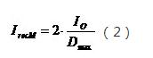 在大多數情況下,反激式開關電源的輸出整流器的最大導通占空比約為0.5。這樣,流過輸出整流器的電流峰值與輸出平均值電流之間的關係為: