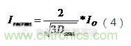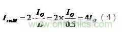 (3)流過整流器的有效值電流與平均值電流的關係: