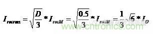 流過輸出濾波電容器的電流有效值略小於流過輸出整流器的有效值電流。