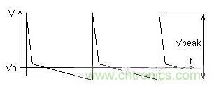25℃溫度下,25V/1000μF低ESR鋁電解電容器的ESR約為0.09Ω。7隻並聯對應的ESR為129mΩ、5隻並聯為180mΩ、4隻並聯為225mΩ。由電流變化在ESR上產生的峰值電壓分別為2.59V、3.60V、4.50V。除此之外,濾波電容器的ESL還(hai)會(hui)在(zai)整(zheng)流(liu)二(er)極(ji)管(guan)開(kai)通(tong)時(shi)由(you)於(yu)電(dian)流(liu)的(de)躍(yue)變(bian)而(er)產(chan)生(sheng)感(gan)生(sheng)電(dian)勢(shi),這(zhe)個(ge)感(gan)生(sheng)電(dian)勢(shi)同(tong)樣(yang)會(hui)加(jia)到(dao)濾(lv)波(bo)電(dian)容(rong)器(qi)上(shang),因(yin)此(ci),濾(lv)波(bo)電(dian)容(rong)器(qi)上(shang)的(de)峰(feng)值(zhi)電(dian)壓(ya)將(jiang)不(bu)隻(zhi)是(shi)上(shang)述(shu)的(de)2.59V、3.60V、4.50V。其電壓波形如圖3。
