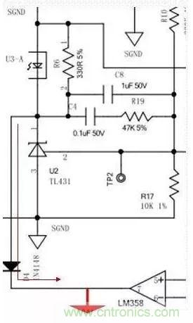 C8、C4、R19組成了431所需的回收回路補償,以便穩定控製回路。