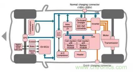 圖1展示了這些係統以及需要在EV中控製或通信的許多其他子係統。
