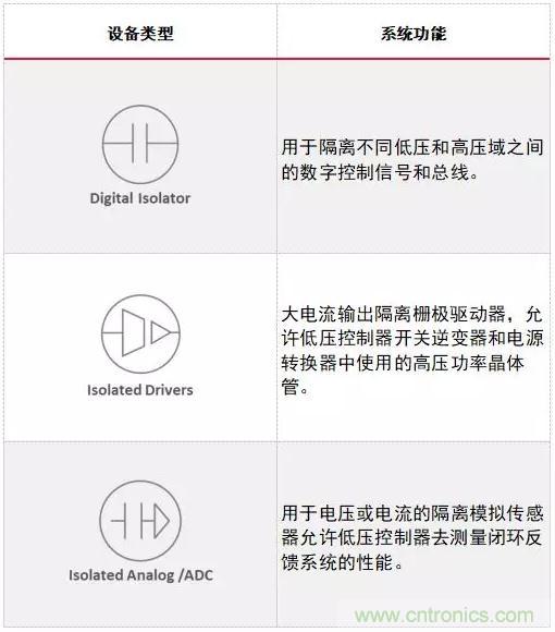 表1中所示的隔離元器件經常用於EV係統中的通信和控製。