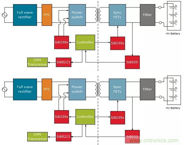 隨sui著zhe汽qi車che設she計ji轉zhuan向xiang電dian氣qi化hua,高gao瓦wa數shu功gong率lv電dian子zi設she備bei成cheng為wei新xin型xing電dian子zi傳chuan動dong係xi統tong和he電dian池chi係xi統tong的de關guan鍵jian部bu件jian。這zhe些xie高gao瓦wa數shu電dian子zi設she備bei需xu要yao與yu低di壓ya數shu字zi控kong製zhi器qi通tong信xin並bing由you其qi控kong製zhi,這zhe需xu要yao在zai控kong製zhi器qi和he電dian力li係xi統tong之zhi間jian進jin行xing電dian氣qi隔ge離li。在zai這zhe些xie應ying用yong中zhong,電dian流liu隔ge離li(通常是基於半導體的隔離)是必須的,以允許數字控製器安全地和現代EV高壓係統進行連接。