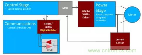 由於高電流和電氣開關,EV中(zhong)的(de)低(di)壓(ya)控(kong)製(zhi)器(qi)通(tong)常(chang)需(xu)要(yao)在(zai)嘈(cao)雜(za)的(de)連(lian)接(jie)環(huan)境(jing)下(xia)將(jiang)數(shu)字(zi)通(tong)信(xin)信(xin)號(hao)發(fa)送(song)到(dao)位(wei)於(yu)高(gao)壓(ya)子(zi)係(xi)統(tong)中(zhong)的(de)其(qi)他(ta)組(zu)件(jian)。此(ci)外(wai),高(gao)壓(ya)功(gong)率(lv)晶(jing)體(ti)管(guan)需(xu)要(yao)由(you)低(di)壓(ya)控(kong)製(zhi)器(qi)控(kong)製(zhi)和(he)隔(ge)離(li),低(di)壓(ya)控(kong)製(zhi)器(qi)還(hai)需(xu)要(yao)測(ce)量(liang)係(xi)統(tong)中(zhong)其(qi)他(ta)高(gao)壓(ya)部(bu)分(fen)的(de)電(dian)流(liu)或(huo)電(dian)壓(ya)。