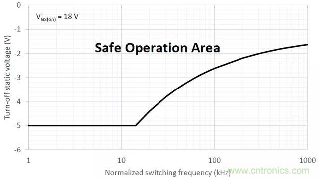通過控製門極負壓Vgs(off),Vth漂移可以被限製在一個可接受的水平內。不論什麼情況下,關斷電壓的上限都是0V,同時,關斷電壓的下限需要根據開通電壓、開關頻率、以及操作時間來選擇一個合適的值,使Rds(on)的增加限製在一定範圍之內。