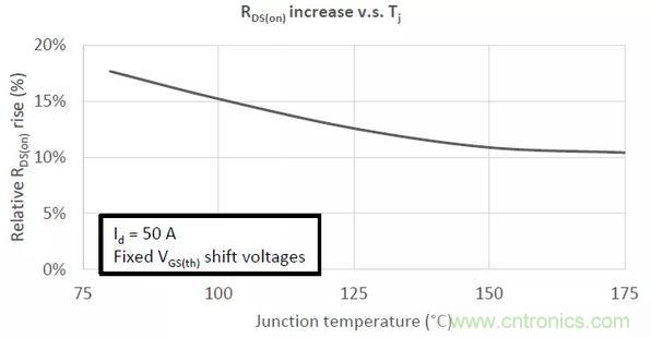 通常來說,15%的Rds(on)增量是最壞的情況。更大的增量隻可能出現在高電流和低結溫的工況中,這在實際應用中十分罕見。