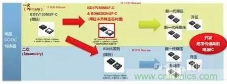 因此,從降壓電源變身為升降壓電源僅需增加1枚升壓專用IC即可輕鬆實現,與升降壓電源和降壓電源分別設計的情況相比,開發周期可縮減50%。