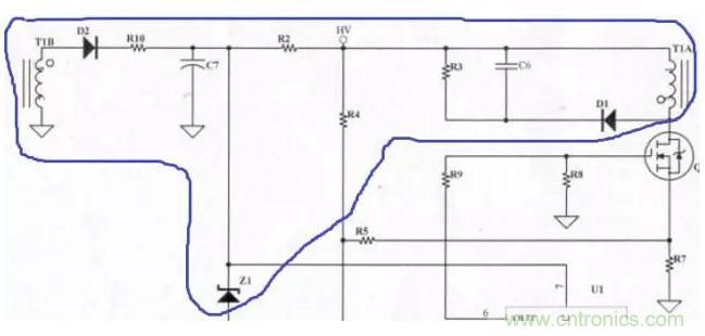 主要用於調整PWM IC的VCC電壓,以目前使用的3843而言,設計時VCC必須大於8.4V(Min. Load時),但為考慮輸出短路的情況,VCC電壓不可設計的太高,以免當輸出短路時不保護(或輸入瓦數過大)。