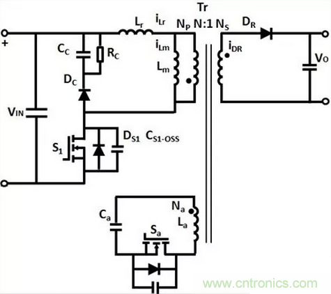 圖1:有源箝位反激變換器的電路結構
