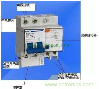 第三種情況是漏電保護開關本身正著安裝但是接線是反著安裝的: