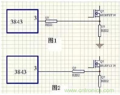 控製部分要注意:高阻抗弱信號電路連線要盡量短如取樣反饋環路,在處理時要盡量避免其受幹擾、電流取樣信號電路,特別是電流控製型電路,處理不好易出現一些想不到的意外,其中有一些技巧,現以3843電路舉例見圖(1)圖一效果要好於圖二,圖二在滿載時用示波器觀測電流波形上明顯疊加尖刺,由於幹擾限流點比設計值偏低,圖一則沒有這種現象、還有開關管驅動信號電路,開關管驅動電阻要靠近開關管,可提高開關管工作可靠性,這和功率MOSFET高直流阻抗電壓驅動特性有關。