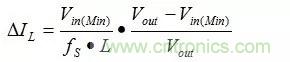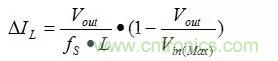 式中:△IL為電感電流的紋波,fs為開關頻率。