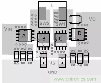 降壓Buck變bian換huan器qi的de電dian感gan位wei於yu輸shu出chu回hui路lu,所suo以yi輸shu出chu回hui路lu的de電dian流liu是shi連lian續xu的de,輸shu入ru回hui路lu的de電dian流liu是shi不bu連lian續xu的de,輸shu入ru回hui路lu的de幹gan擾rao大da,這zhe些xie環huan路lu產chan生sheng很hen大da的de磁ci場chang發fa射she,因yin此ci輸shu入ru回hui路lu要yao盡jin可ke能neng的de小xiao。輸shu入ru回hui路lu的de地di為wei功gong率lv地di,要yao與yu係xi統tong的de信xin號hao地di分fen開kai單dan獨du布bu線xian,輸shu出chu地di可ke以yi作zuo為wei幹gan淨jing的de信xin號hao地di。