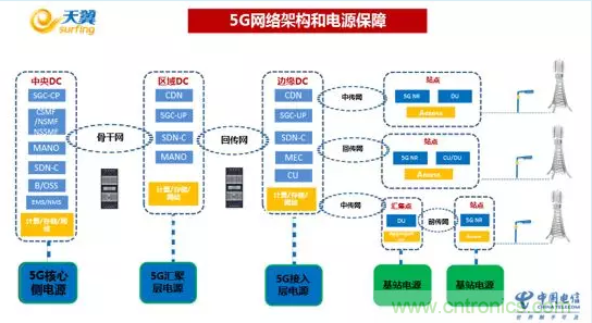 圖2 5G網絡架構和電源保障(來源:中國電信)