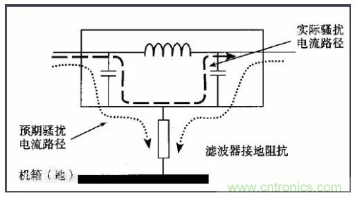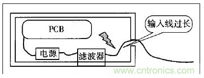 許xu多duo設she備bei的de電dian源yuan線xian進jin入ru機ji箱xiang後hou,經jing過guo很hen長chang的de導dao線xian才cai接jie到dao濾lv波bo器qi的de輸shu入ru端duan。例li如ru,電dian源yuan線xian從cong機ji箱xiang後hou麵mian板ban輸shu入ru,走zou行xing到dao前qian麵mian板ban的de電dian源yuan開kai關guan,又you回hui到dao後hou麵mian板ban接jie到dao濾lv波bo器qi。或huo者zhe濾lv波bo器qi的de安an裝zhuang位wei置zhi距ju離li電dian源yuan線xian入ru口kou較jiao遠yuan,造zao成cheng引yin線xian太tai長chang(如圖1所示)。