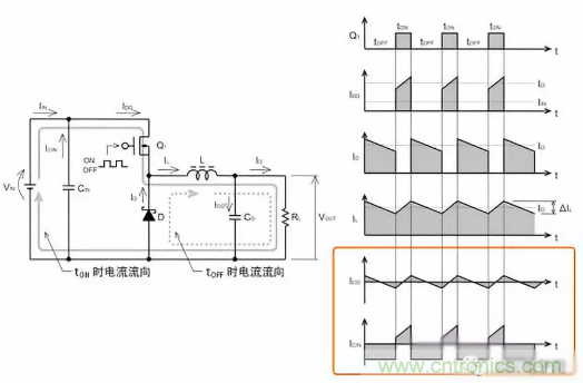・降壓轉換器中,瞬間輸入電流的最大值與輸出電流相同。
