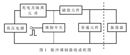 通tong過guo以yi上shang各ge部bu分fen功gong能neng的de描miao述shu,可ke清qing楚chu地di看kan出chu脈mai衝chong調tiao製zhi器qi的de工gong作zuo原yuan理li就jiu是shi利li用yong具ju有you一yi定ding脈mai衝chong寬kuan度du和he重zhong複fu周zhou期qi的de脈mai衝chong,通tong過guo控kong製zhi調tiao製zhi開kai關guan的de通tong斷duan來lai控kong製zhi儲chu能neng元yuan件jian的de充chong放fang電dian,從cong而er形xing成cheng符fu合he要yao求qiu的de高gao壓ya脈mai衝chong,驅qu動dong振zhen蕩dang器qi工gong作zuo。它ta實shi質zhi上shang是shi一yi個ge功gong率lv轉zhuan換huan器qi,即ji將jiang平ping均jun功gong率lv較jiao小xiao的de直zhi流liu電dian源yuan轉zhuan換huan成cheng脈mai衝chong功gong率lv較jiao大da的de窄zhai脈mai衝chong源yuan。假jia設she在zai整zheng個ge脈mai衝chong間jian歇xie期qi內nei儲chu能neng元yuan件jian儲chu存cun的de能neng量liang為weiWc,則Wc=Pe•(T-τ)•ηc (1)