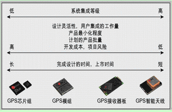 近年來,GPS已從一種集成產品發展成綜合係統解決方案的一部分。這種轉變的動因是GPS的小型化進程和對降低成本的追求。高度集成的信號混合芯片完成RF前端功能,整個係統由包括GPS硬件、強大的處理內核、嵌入式存儲器的芯片以及小型電子元件構成,這些使得GPS小型化成為可能。OEM可以選擇用GPS芯片組、GPS模塊或智能天線模塊來實現係統集成。每種方案都有各自的利弊:基於芯片組的設計能提供高度的靈活性,但同時設計需要投入大量精力,並要求設計工程師掌握豐富的RF知識;而智能天線模塊是快速係統集成的正確選擇,在快速係統集成應用中,基於這種充分設計的GPS子係統,集成隻需要最短的開發時間、最低的開發成本以及最小的開發風險。在開始批量生產的時候,采用智能天線模塊會顯著簡化物料采購儲備工作和產品的測試流程。