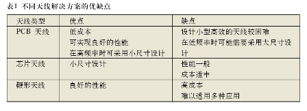 在選擇天線時,天線的尺寸、成本以及性能是最重要的考慮因素。對於短距離無線設備而言,三種最常見的天線為PCB天線、芯片天線以及鞭形天線。這三種天線的優缺點如表1所示。