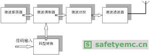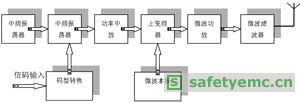 中頻調製發射機的方框圖如圖2所suo示shi。信xin碼ma經jing過guo碼ma型xing變bian換huan後hou,在zai中zhong頻pin調tiao製zhi器qi中zhong進jin行xing調tiao製zhi,獲huo得de中zhong頻pin調tiao製zhi信xin號hao,然ran後hou經jing過guo功gong率lv中zhong放fang,把ba這zhe個ge己ji調tiao信xin號hao放fang大da到dao上shang變bian頻pin器qi要yao求qiu的de功gong率lv電dian平ping。上shang變bian頻pin器qi把ba它ta變bian換huan為wei微wei波bo調tiao製zhi信xin號hao,再zai經jing微wei波bo功gong率lv放fang大da器qi放fang大da到dao所suo需xu的de輸shu出chu功gong率lv電dian平ping,最zui後hou經jing微wei波bo濾lv波bo器qi輸shu出chu饋kui送song到dao天tian線xian,由you發fa射she天tian線xian將jiang信xin號hao送song出chu。