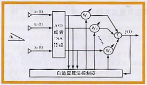 智能天線引入空分多址(SDMA)方式。在相同時隙、相(xiang)同(tong)頻(pin)率(lv)或(huo)相(xiang)同(tong)地(di)址(zhi)碼(ma)的(de)情(qing)況(kuang)下(xia),用(yong)戶(hu)仍(reng)可(ke)以(yi)根(gen)據(ju)信(xin)號(hao)空(kong)間(jian)傳(chuan)播(bo)路(lu)徑(jing)的(de)不(bu)同(tong)而(er)區(qu)分(fen)。實(shi)際(ji)應(ying)用(yong)中(zhong),天(tian)線(xian)陣(zhen)多(duo)采(cai)用(yong)均(jun)勻(yun)線(xian)陣(zhen)或(huo)均(jun)勻(yun)圓(yuan)陣(zhen)。智(zhi)能(neng)天(tian)線(xian)係(xi)統(tong)由(you)天(tian)線(xian)陣(zhen);波束成形成網絡;自適應算法控製三部分組成(見圖1)。
