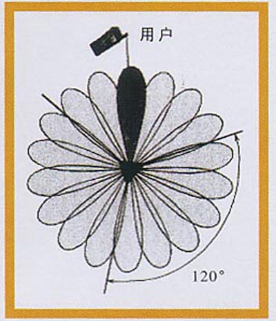 (1)波束轉換智能天線波束轉換智能天線具有有限數目的、固定的、預定義的方向圖,它利用多個並行窄波束(15°~30°水平波束寬度)覆蓋整個用戶區,每個波束的指向是固定的,波束寬度也隨天線元的數目而確定(見圖2)。波束轉換係統實現比較經濟,與自適應天線相比結構簡單,無需迭代,響應快、魯棒性好。但預先設計好的工作模式有限,窄波束的特性將極大地影響係統性能。