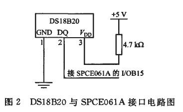 溫度檢測單元采用D1S8B02型傳感器,是美國DALLASgongsituichudeyizhonggaijinxingzhinengwenduchuanganqi,yuchuantongderemindianzudengcewenyuanjianxiangbi,tanengzhijieduchubeicewendu,bingqiekegenjushijiyaoqiutongguobianchengshixian9~12位的數字值讀數方式。DS18BZo與SPCEo61A單片機的接口電路如圖2所示,由於DS18B20傳感器支持“一線總線”接口,因此隻需將DS18B20信號線接到單片機的1位1/0線上即可,而且在1根1/0線上可以掛接多個傳感器實現多點溫度測量。