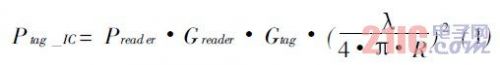 式中,Ptag_IC是芯片接收到的能量,Preader為讀寫器發射功率,Gtag是標簽天線增益,Greader是讀寫器天線增益,R為標簽到讀寫器的距離。