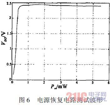 根據Pin和VDD,繪製出反映電源恢複電路性能的輸入輸出特性曲線,如圖6所示。