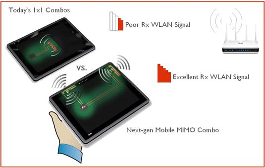 幸運的是,新一代無線產品同時滿足了之前提到的兩方麵的要求。移動MIMO技術引入,將另一個收發器放入一個真正的MIMO技術裝置中,使得下一代平板電腦最終可以擁有PC機的使用體驗。