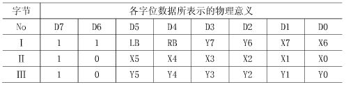 編碼的目的是將X和Y方向的位移改變量,連同鼠標按鍵的實時信息,按照標準的Microsoft鼠(shu)標(biao)協(xie)議(yi)要(yao)求(qiu)的(de)格(ge)式(shi)進(jin)行(xing)編(bian)碼(ma),以(yi)便(bian)最(zui)後(hou)發(fa)送(song)到(dao)主(zhu)機(ji)的(de)信(xin)息(xi)能(neng)夠(gou)被(bei)電(dian)腦(nao)正(zheng)確(que)識(shi)別(bie),從(cong)而(er)使(shi)電(dian)腦(nao)能(neng)正(zheng)確(que)處(chu)理(li)發(fa)送(song)給(gei)它(ta)的(de)位(wei)移(yi)信(xin)號(hao),來(lai)正(zheng)確(que)控(kong)製(zhi)鼠(shu)標(biao)光(guang)標(biao)的(de)移(yi)動(dong)等(deng)動(dong)作(zuo)。表(biao)1表示的即是標準的鼠標協議規定的三字節數據包格式,第1個字節記錄的是左右按鍵的信息和鼠標X,Y位移的最高2個字位的數據,按鍵按下時,對應的位置1,否則,置0;第2和第3個字節分別記錄X和Y方向位移的低6位數據。位移值的範圍取-127~+127,再大的位移改變量會自動溢出。
