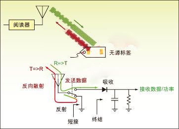 圖1:無源標簽對射頻 RF能量進行整流並調製信號,然後反向散射反射給閱讀器。