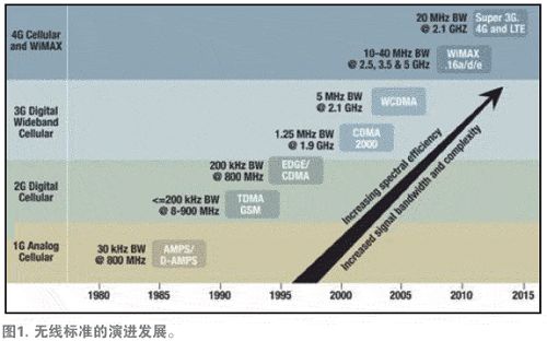 weilejiejuezheyiwenti,wuxiantigongshangzhuanercaiyongleketigaopinpuxiaolvdewuxianbiaozhun。zheleisiyujiangduoliangshiwangtongyimudedidejiaochemafangzaiyiliangkacheshang,bingjiangkacheyanzhegaosugonglukaiwangmudedi。zhezhongfangfashixiangtongdegaosugonglushangkeyishixiangengduodeshujuchuanshuliuliang,erbuhuidaozhiliuliangjiangdi。weiletigaopinpuxiaolv,womenkebushuhuodingyisuoyoudewuxianbiaozhun,qizhongbaokuoCDMA2000、W-CDMA、TD-SCDMA、MC-GSM、WiMAX以及LTE等。圖1顯示了近年來用於提高頻譜效率所部署或定義的無線標準。
