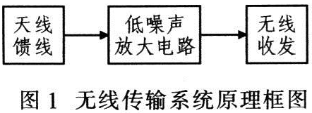 圖1為無線傳輸係統原理框圖。接收端的功率放大電路模塊由於信道具有衰減特性,經遠距離傳輸到達接收端的射頻信號電平多是μV數量級,因此需放大微弱的射頻信號。同時,信道中還存許多幹擾信號,即噪聲,所以該係統設計應采用低噪聲的射頻功率放大電路。