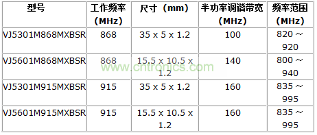 VJ5301M868MXBSR、VJ5301M915MXBSR、VJ5601M868MXBSR和VJ5601M915MXBSR采用貴金屬電極技術(NME)和濕法加工工藝,具有高可靠性、陶瓷氧化物本體結構。符合RoHS的片式天線也符合per IEC 61249-2-21的無鹵素規定,可用標準的回流焊安裝到PCB板上。