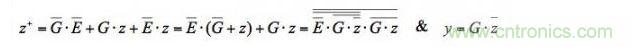 從這個公式可以看出,其中針對z+的最小項[E●z]不是多餘的。它在最小項[G●E]和[G●z]之間扮演著反競爭橋的重要角色,可以消除G的所有邊沿處的連續競爭。