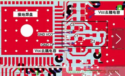 在本文的後麵部分將會看到,PLL的實現在係統設計中總是麵臨巨大挑戰,要想獲得滿意的雜散特性必須有良好的地線布局。目前,IC設計中將所有的PLL和VCO都集成到了芯片內部,大多數PLL都利用數字電流電荷泵輸出通過一個環路濾波器控製VCO。通常,需要用二階或三階的RC環huan路lu濾lv波bo器qi濾lv除chu電dian荷he泵beng的de數shu字zi脈mai衝chong電dian流liu,得de到dao模mo擬ni控kong製zhi電dian壓ya。靠kao近jin電dian荷he泵beng輸shu出chu的de兩liang個ge電dian容rong必bi須xu直zhi接jie與yu電dian荷he泵beng電dian路lu的de地di連lian接jie。這zhe樣yang,可ke以yi隔ge離li地di回hui路lu的de脈mai衝chong電dian流liu通tong路lu,盡jin量liang減jian小xiaoLO中相應的雜散頻率。第三個電容(對於三階濾波器)應該直接與VCO的地層連接,以避免控製電壓隨數字電流浮動。如果違背這些原則,將會導致相當大的雜散成分。
