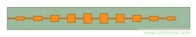 在串饋微帶貼片陣列中,每個貼片天線的寬度正比於貼片天線等效導納,而等效導納又正比於該貼片的激勵功率;因(yin)此(ci)通(tong)過(guo)並(bing)調(tiao)節(jie)線(xian)陣(zhen)中(zhong)每(mei)個(ge)貼(tie)片(pian)的(de)寬(kuan)度(du),可(ke)以(yi)改(gai)變(bian)該(gai)天(tian)線(xian)的(de)激(ji)勵(li)功(gong)率(lv),從(cong)而(er)實(shi)現(xian)線(xian)陣(zhen)激(ji)勵(li)的(de)錐(zhui)削(xue)分(fen)布(bu),滿(man)足(zu)防(fang)撞(zhuang)雷(lei)達(da)天(tian)線(xian)在(zai)俯(fu)仰(yang)麵(mian)對(dui)於(yu)低(di)副(fu)瓣(ban)的(de)要(yao)求(qiu)。